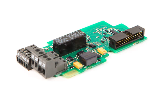 Utstyrt med 2 reléutgangssignaler og en termistorinngang for overtemperaturbeskyttelse for VACON® NXS og VACON® NXP produkter.