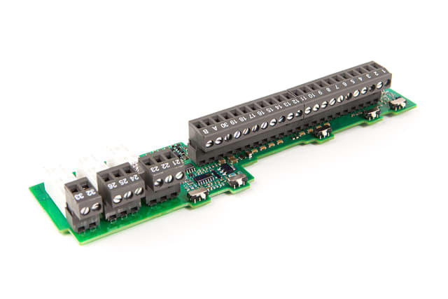 Sørger for en rekke inngangs-/utgangssignaler og et RS485-grensesnitt til VACON® 100- og VACON® 100 FLOW-produkter. Også VACON® 100 HVAC-produkter med nye styrekort støtter dette I/O-kortet