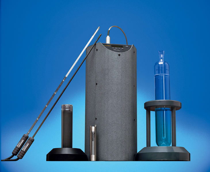 Fluke 9210 apparatet ovenfor hjelper deg med å raskt oppnå trippelpunkt vann, og så lenge man klarer å opprettholde dette forholdet mellom vann i fast-, flytende- og dampform vil temperaturen være ekstremt stabil ved eksakt 0,01°C.